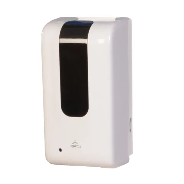 Berührungsfreier Spender mit Tropfen. Im Paket enthalten sind ein Schlüssel zum Öffnen des Behälters zum Nachfüllen sowie 4 Schrauben & rawlplugs zur ggf. Wandmontage