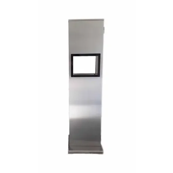 Dank des eleganten Designs eignet sich der Edelstahlständer für viele Einsatzzwecke. Gegen Aufpreis können die Edelstahloberflächen des Ständers nach Kundenwunsch mit Werbung (z. B. Firmenlogo) versehen werden, oder der Kunde kann dies anschließend selbst anpassen. Der Ständer verfügt über eine stabile Edelstahlkonstruktion und bietet ein internes, abschließbares Fach, in dem zusätzliche 5-L-Kanister mit Desinfektionsmittel Platz finden für einen schnellen Austausch. Außerdem sind 1 Stk. zusätzliche Steuerung und Pumpe enthalten, sodass Sie im Fall der Fälle im Handumdrehen wieder einsatzbereit sind.