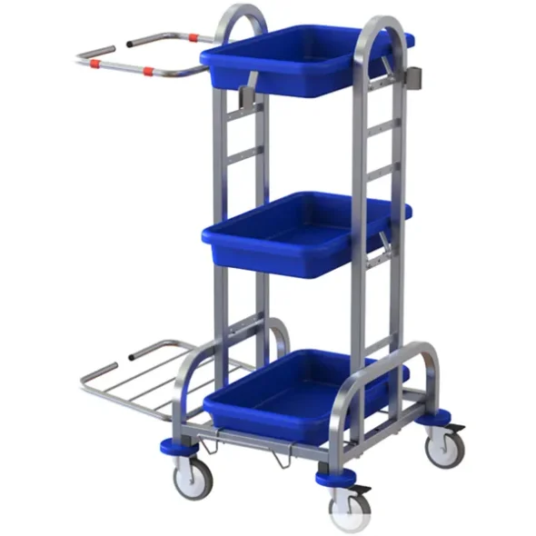 Yo Yo Reinigungswagen hat ein Gestell aus Edelstahl, er ist stabil und kompakt und eignet sich für Orte mit begrenztem Platz.
