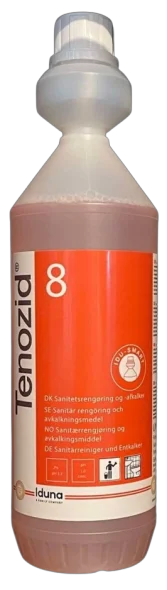 Produktbeschreibung: Tenozid 8 ist ein stark saures, hochkonzentriertes Reinigungsmittel, entwickelt für die periodische Entkalkung und Reinigung von Nassräumen. Es ist ideal für Bade- und Toilettenräume, Fliesen, Armaturen, Toilettenschüsseln, Waschräume, Edelstahl, Aluminium, Urinale, Duschkabinen sowie lackierte Flächen. Mit Tenozid 8 können Sie sicherstellen, dass Ihre Oberflächen stets sauber wirken und frei von Kalk, Schmutz, Seifenresten und Hautfett sind. Mit sauberem und frischem Duft.