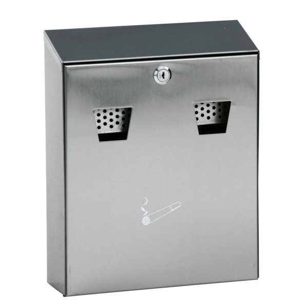 Produktbeschreibung: Praktischer Aschenbecher zur Wandmontage mit zwei Einwurföffnungen. Der Inneneimer ist aus verzinktem Stahl gefertigt. Leicht zu entleeren, da man einfach die Frontklappe mit dem mitgelieferten Schlüssel öffnet.