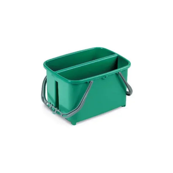 Doppel-Reinigungseimer, unterteilt in 2 Kammern, die jeweils ein Fassungsvermögen von 11 Litern haben.