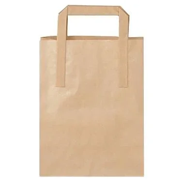 Tragetasche aus braunem Papier mit Henkel. Die Tasche misst L 180 x B80 x H220 mm. Das Volumen beträgt 4,9 Liter.