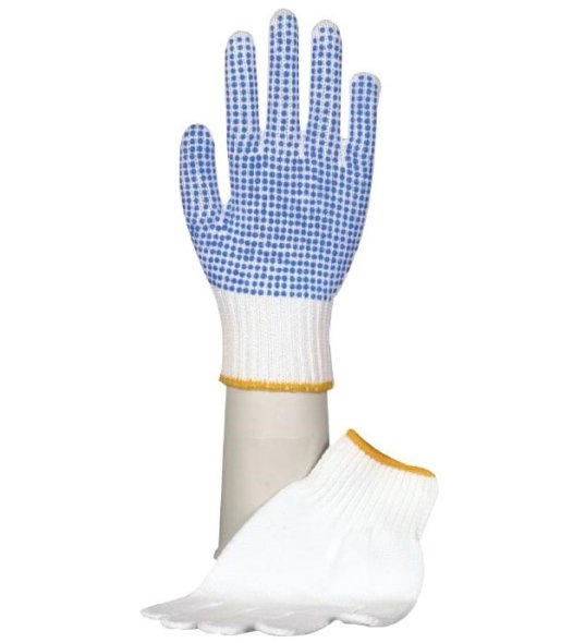 Strickhandschuhe weiß mit Noppen, Gr. M, 12 Paar