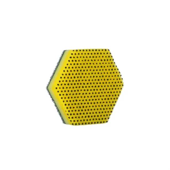 3M Scotch Brite neuer Scheuerschwamm 96-HEX hat Eigenschaften wie kein anderer Scheuerschwamm auf dem Markt. 96-HEX hat eine gelbe Seite mit kleinen "power dots", die entwickelt wurden, um hartnäckige Speisereste zu entfernen. Die grüne Seite entfernt feine Partikel, Fett und poliert eine glänzende Oberfläche. Die sechseckige Form macht es einfach, Pfannen, Spülen, Töpfe, Pfannen usw. zu reinigen. 147 x 125 mm HACCP-zertifiziert.