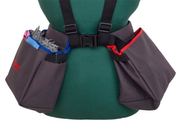 • Die Sprühflasche findet Platz in der kleinen zusätzlichen Tasche vorne an der blauen Seite.