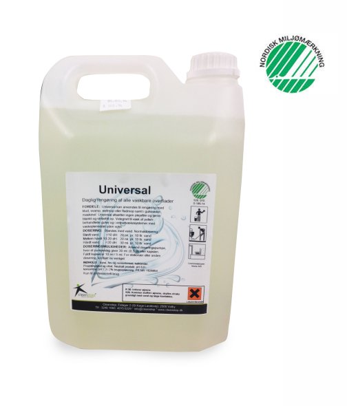 Für den täglichen Gebrauch auf allen abwaschbaren Oberflächen. Universal kann zur Reinigung mit Tuch, Schwamm, Nassmopp, im Flachmopp sowie in Scheuersaugmaschinen verwendet werden. Das Nordic Swan Ecolabel Universal-Reinigungsmittel hinterlässt keinen Pflegefilm und trocknet glänzend sowie streifenfrei auf.