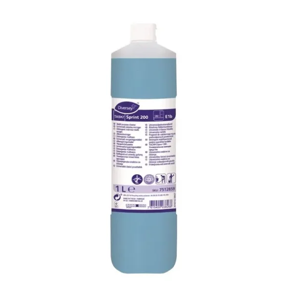 Diversey TASKI Sprint 200 – 1 LiterEffektive Reinigung mit schnellem und streifenfreiem Trocknen!TASKI Sprint 200 von Diversey ist das ultimative Universalreinigungsmittel für den täglichen Gebrauch auf allen abwaschbaren Oberflächen. Es ist pH-neutral, schnellwirkend und hinterlässt bei jeder Anwendung einen frischen Duft. Mit einer einzigartigen Zusammensetzung aus effektiven Tensiden und Odour Neutralizing Technology (O.N.T.) erhalten Sie ein Produkt, das streifenfreies Trocknen und langanhaltende Frische liefert.Eigenschaften:• pH-neutral – schonend zu Oberflächen