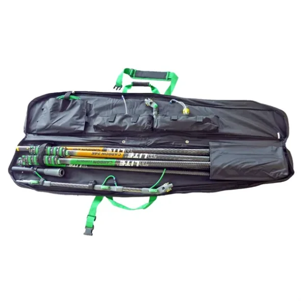 mit Platz für 5 Stangen, 2 Bürsten, 1 Schlauch, 1 Winkeladapter, 1 Erweiterungsadapter und gutem Zugang zu zwei Außentaschen für ZubehörWird ohne Zubehör geliefert