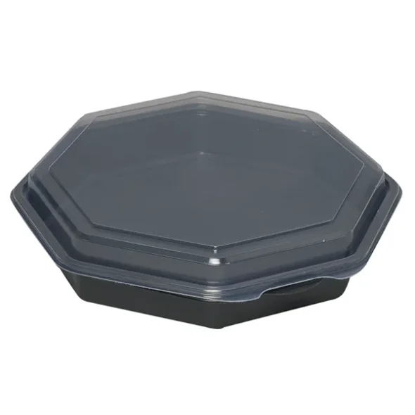 Kunststoffschale, 23x23x5cm, 1000 ml, 1000 ml, schwarz, PS, mit Klappdeckel, octaview