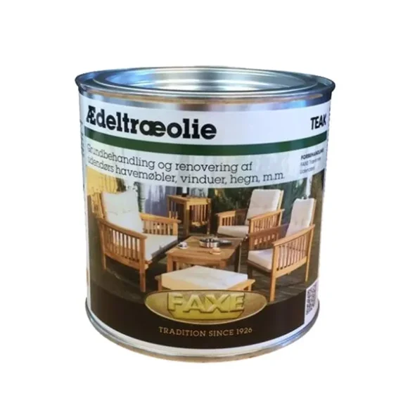 FAXE Edelholzöl wird zur Behandlung und Renovierung u. a. von Gartenmöbeln aus Holz verwendet. FAXE Edelholzöl eignet sich auch zur Behandlung von Fenstern und Türen sowie Holzterrassen. FAXE Edelholzöl schützt das Holz vor den Einflüssen des Klimas. Die Pigmente ergänzen die Farbe des Holzes und verhindern eine frühzeitige Alterung des Holzes. Struktur und Maserung bleiben bei der Behandlung mit FAXE Edelholzöl erhalten und bieten gleichzeitig einen effektiven UV-Schutz. Bitte beachten Sie, dass neues, frisches Edelholz (Teak, Mahagoni, Meranti, Nyatoh und andere exotische Holzarten) eigene natürliche Öle enthält. Daher sollte vor dem Ölen mit FAXE Holzreiniger Außen gereinigt werden.