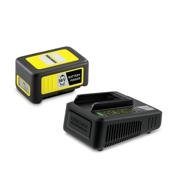 Ein Starterset für alle Kärcher 36 V Akkuplattform-Geräte: Das Kärcher Battery Power 36 V / 2,5 Ah Starterset besteht aus einem austauschbaren 36 V / 2,5 Ah Kärcher Battery Power Akku mit innovativer Real Time Technology sowie einem 36 V Schnellladegerät, das den Akku in nur 48 Minuten auf bis zu 80 % aufladen kann.