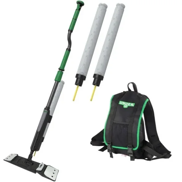 Professionelles Beschichten elastischer Bodenbeläge wie Linoleum und PVC. Arbeiten Sie mit dem UNGER ergo! Wachs-Bodenbeschichtungssystem kontinuierlich und ohne Unterbrechung dank Rucksack mit 5-Liter-Kapazität.