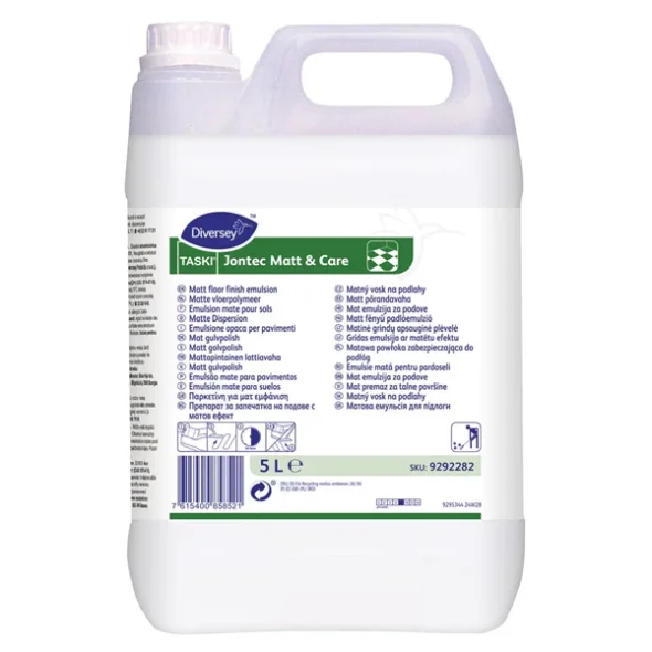 Matte Bodenpolitur für die meisten glatten Böden, die wasserbeständig sind. Die matte Optik verhindert, dass der Boden rutschig wirkt, und ist daher ideal für den Krankenhaus- und Pflegebereich.