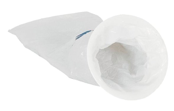 Nach Gebrauch wird der Beutel zugezogen und an der Kerbe am Rand verschlossen.
